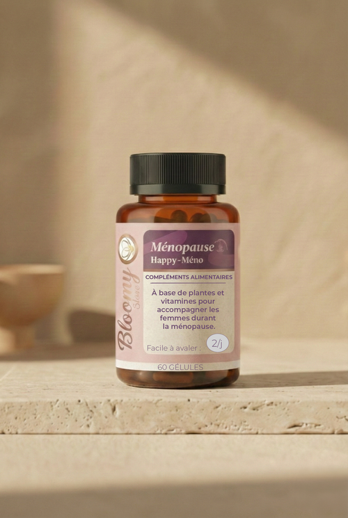 Happy Meno a été pensé comme une formule globale, associant plantes et vitamines, pour accompagner le bien-être féminin dans la durée, sans hormones de synthèse.